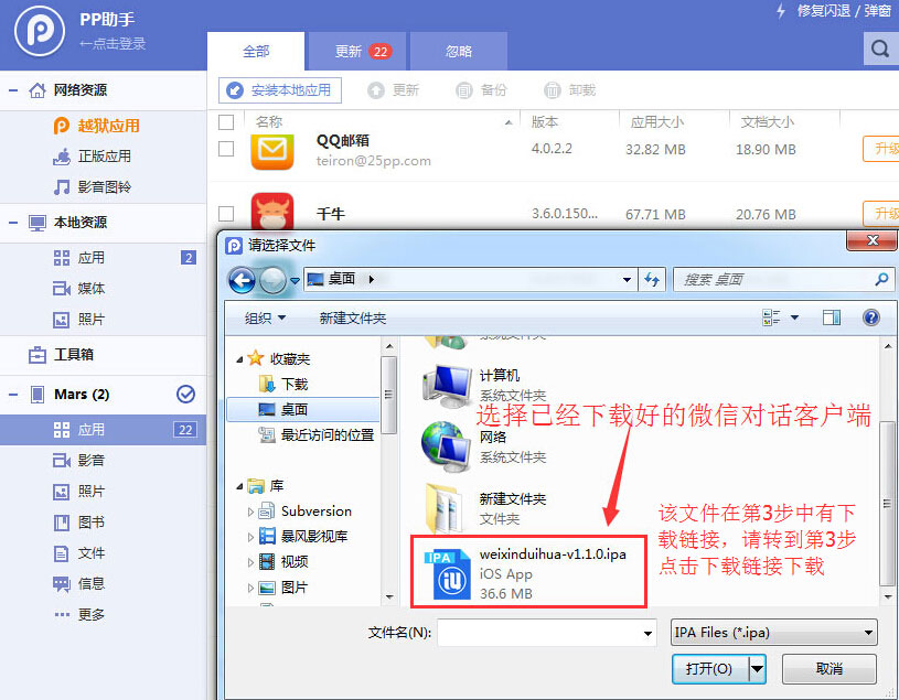 http://app.vjietu.com/weixinduihua-v1.3.0.ipa ,下载保存到桌面